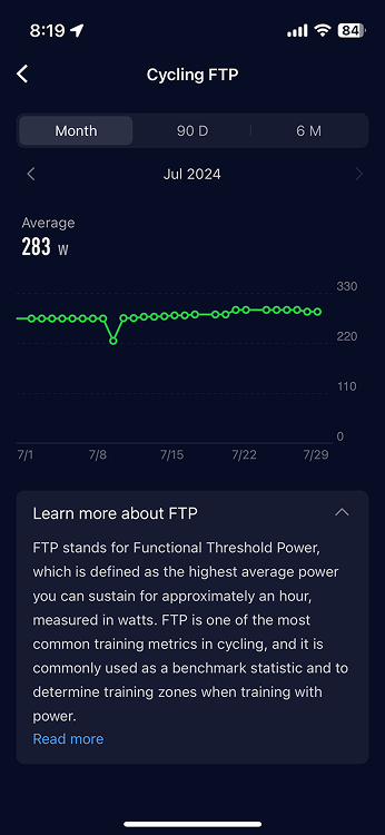 - Die Leistung wird in 7 Intensitätszonen unterteilt, die auf deiner funktionellen Schwellenleistung (FTP) basieren.