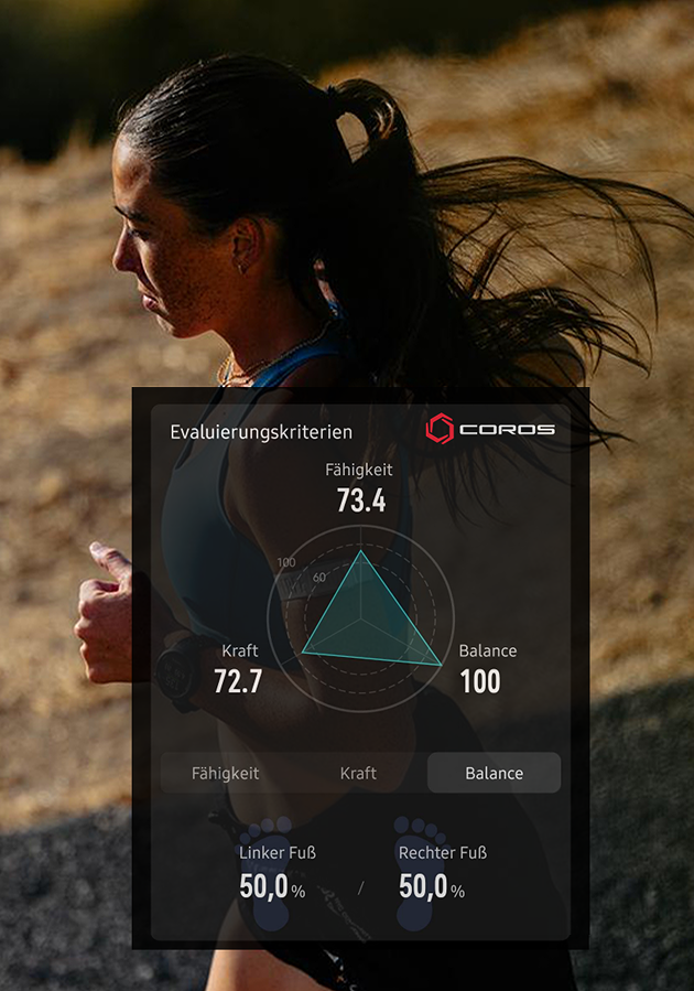 Die Laufanalyse ist in jeder COROS-Uhr integriert. Dieser 5-minütige Test, durchgeführt mit einem POD 2, liefert Einblicke in deine Technik, Kraft und Balance. Jeder dieser Faktoren hängt mit einem geringeren Verletzungsrisiko zusammen – eine detaillierte Aufschlüsselung findest du hier.