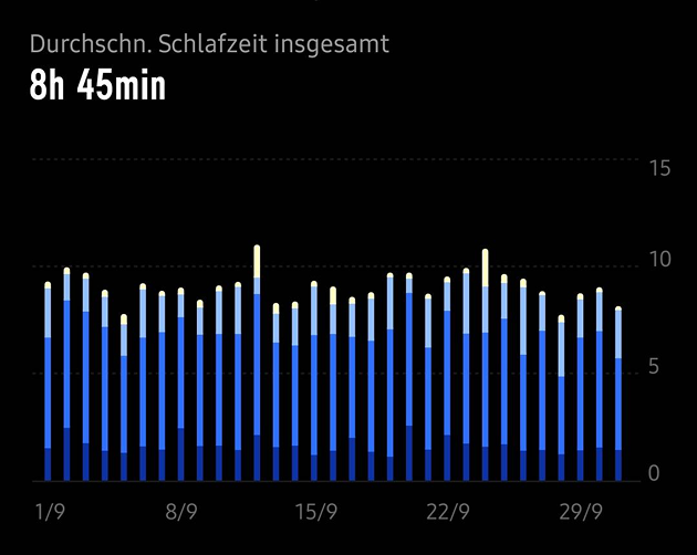 - Prüfe deinen monatlichen Durchschnitt der Schlafzeit und überlege, ob du genug Schlaf bekommst.