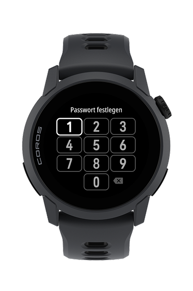 Damit deine Daten sicher bleiben, haben wir eine PIN-Funktion hinzugefügt. Deine Uhr wird automatisch gesperrt, sobald sie dein Handgelenk verlässt. Du kannst einen 4-stelligen Code festlegen, und wenn die Uhr länger als eine Minute abgenommen wird, musst du diesen eingeben, um auf die Daten zugreifen zu können.