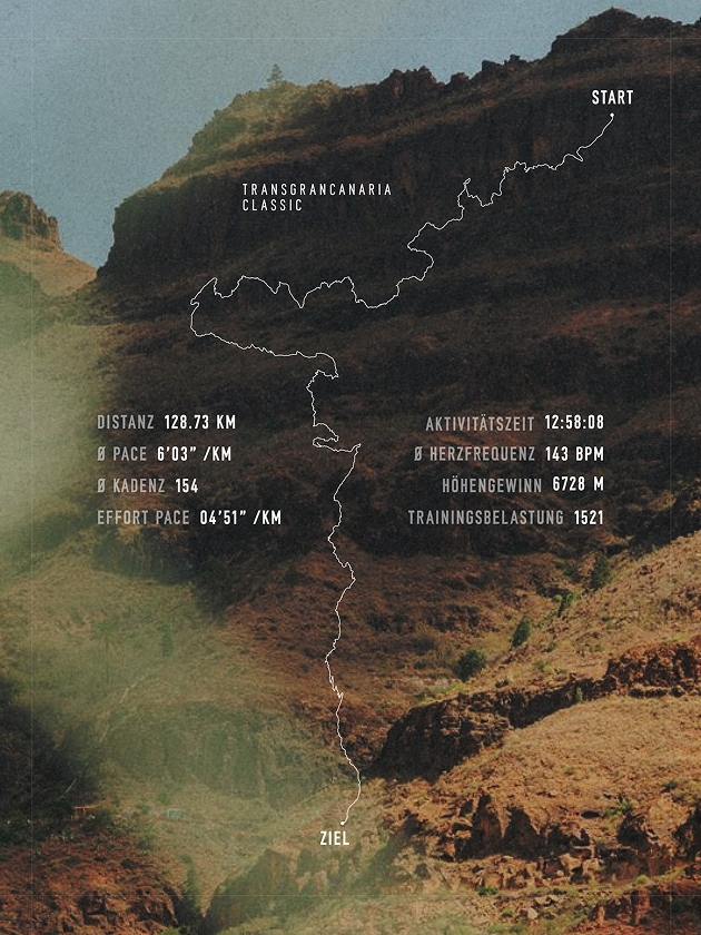 Die Transgrancanaria Classic gehört zu den härtesten frühen Saison-Ultras in Europa. Das Rennen führt einmal quer über die Insel Gran Canaria von Nord nach Süd, über 125 Kilometer mit fast 6.700 Höhenmetern. Die Athlet:innen starten um Mitternacht an der Nordküste und erreichen am Nachmittag des Folgetages die Dünenlandschaft bei Maspalomas. Auch in diesem Jahr änderten sich die Wetterbedingungen unterwegs dramatisch. Kalter Regen und Wind dominierten die Berge in der Nacht, bevor später Hitze und offene, exponierte Abschnitte den Lauf prägten.